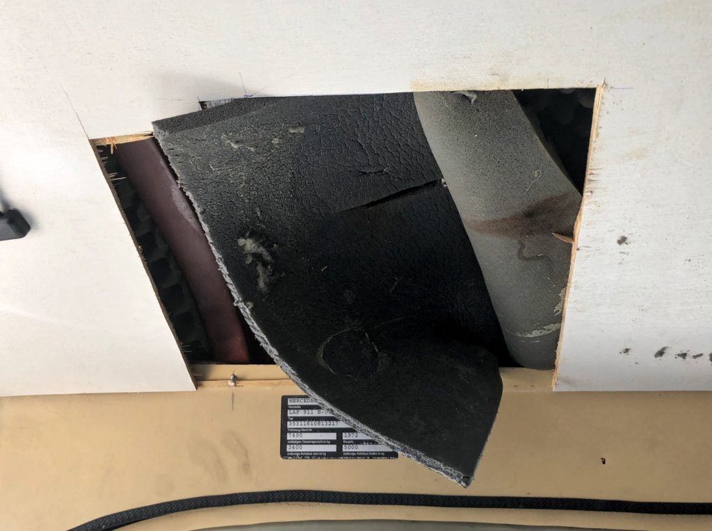 Etwas anders sieht es beim Dach aus: aus uns unerfindlichen Gründen wurde der Dachgepäckträger lediglich am Dachblech festgeschraubt, statt an einer tragenden Konstruktion. Das bedeutet, dass die Holzverkleidung in der Führerkabine aufgesägt und die Isolation rausgenommen werden muss. Eine supermühsame und auch destruierende Angelegenheit und dies nur aufgrund eines wirklich doofen Konstruktionsfehlers. Schliesslich wird der Träger verlängert, sodass er auf einen Dachquerträger verschraubt werden kann; auch der Riss im Dach von TINKA wird geschweisst. Schön ist anders, aber es hält.